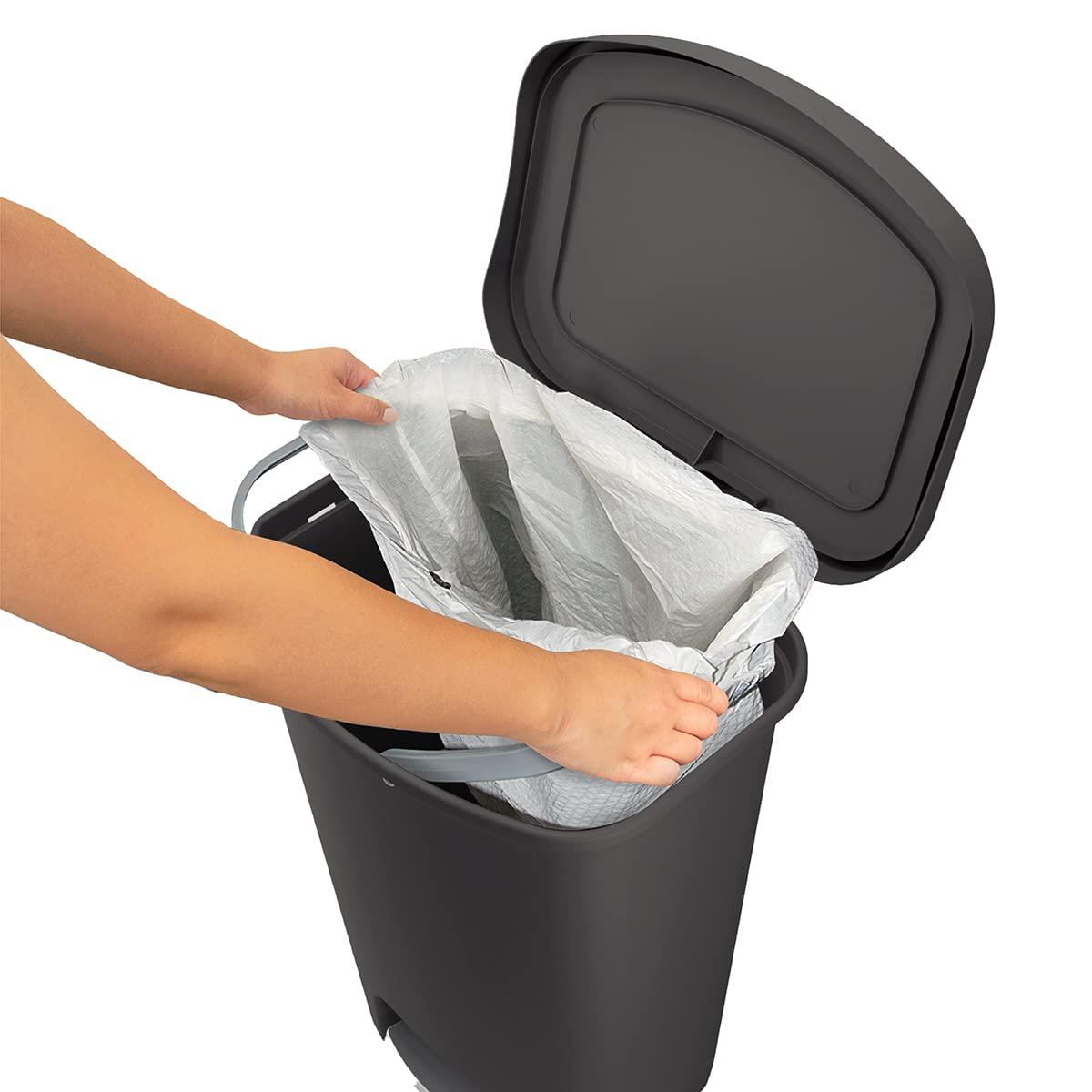 KITCHEN TRASH CAN WITH BAG RINGS – Keep the bag slack neatly tucked inside, while securing the trash bag in place. The interior bag rings will prevent the trash bag from falling in.