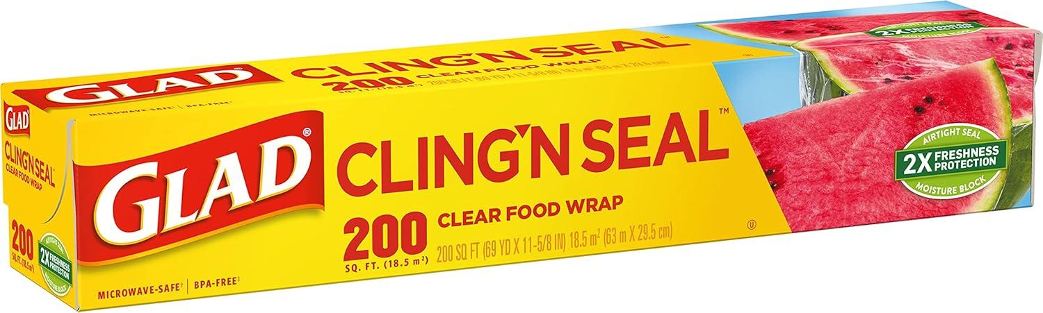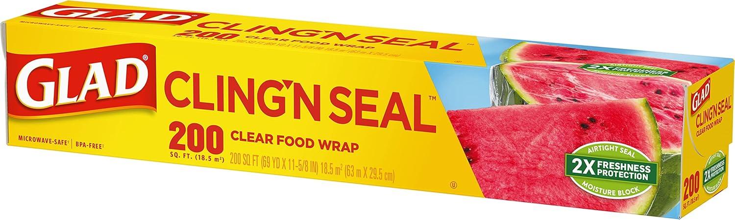 PLASTIC FOOD WRAP: Glad Food Cling ‘N Seal clings to multiple surfaces including glass, metal and wood to keep leftovers fresh and prevent unwanted odors