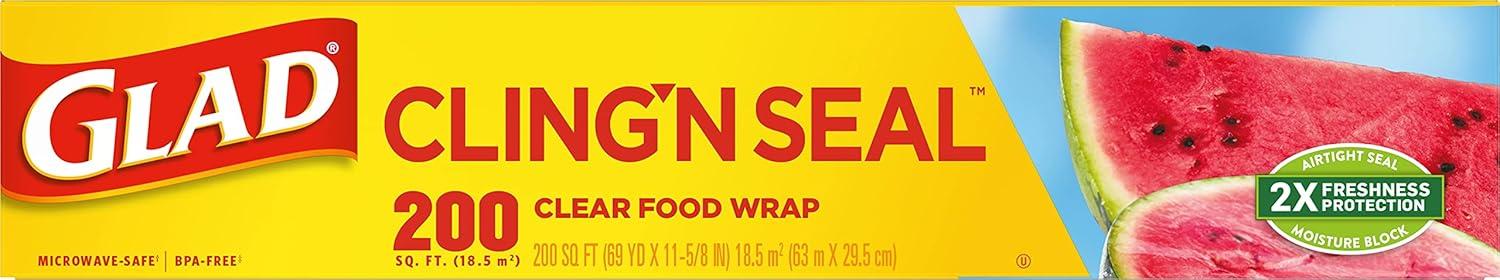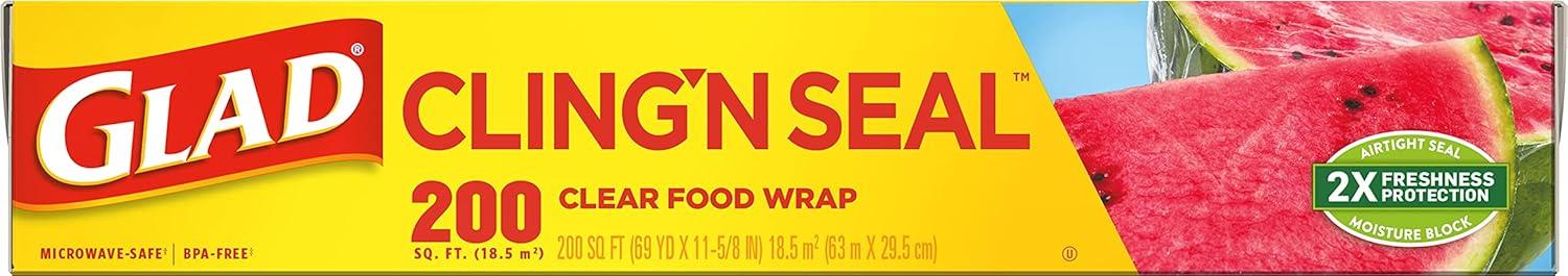 Glad Cling ‘N Seal Plastic Food Wrap, 200 Square Foot Roll, Pack of 12, (Package May Vary)(200 Sq Ft (Pack of 12))