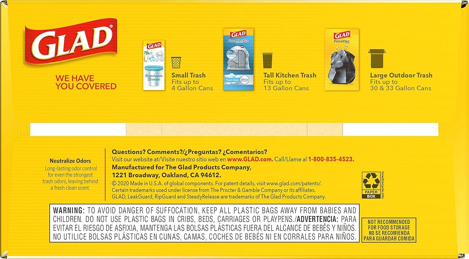 FORCEFLEX STRENGTH: Glad’s trusted ForceFlex technology allows the bag to stretch and expand over heavy loads with sharp edges, delivering durable strength; packaging may vary