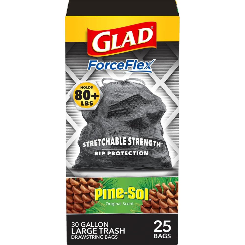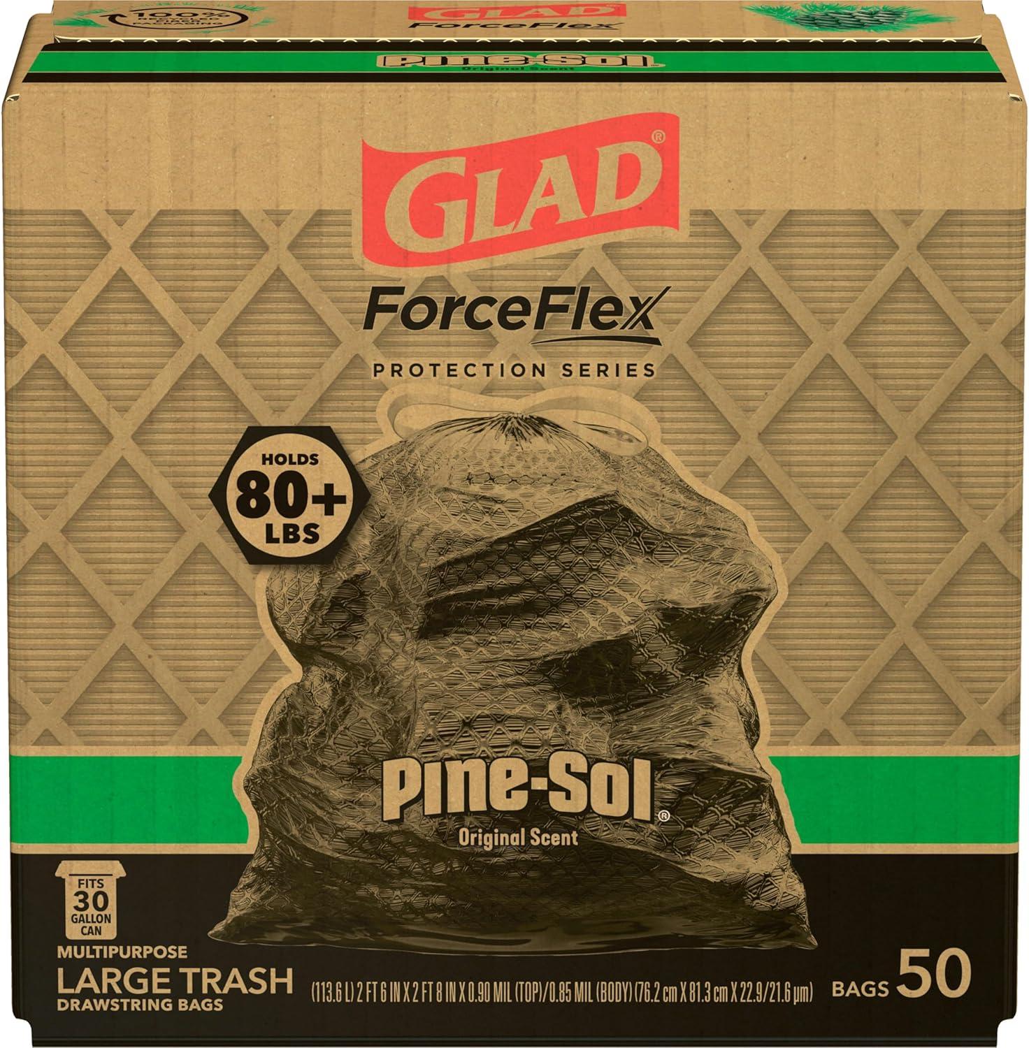 imageGlad Large 30 Gallon Trash Bags Clorox Mountain Air Heavy Duty Garbage Bags Forceflex with Drawstring 50 Count Packaging May VaryPineSol