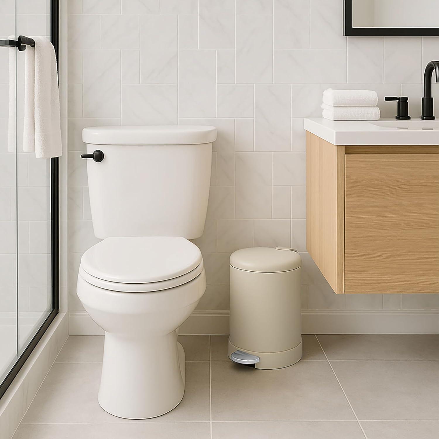 SMALL TRASH CAN WITH LID – The 1.2-gallon capacity makes this compact trash can the perfect size for rooms with limited space. Makes a great office trash can for near desk, lidded bathroom wastebasket, and tiny step can for apartment kitchens.