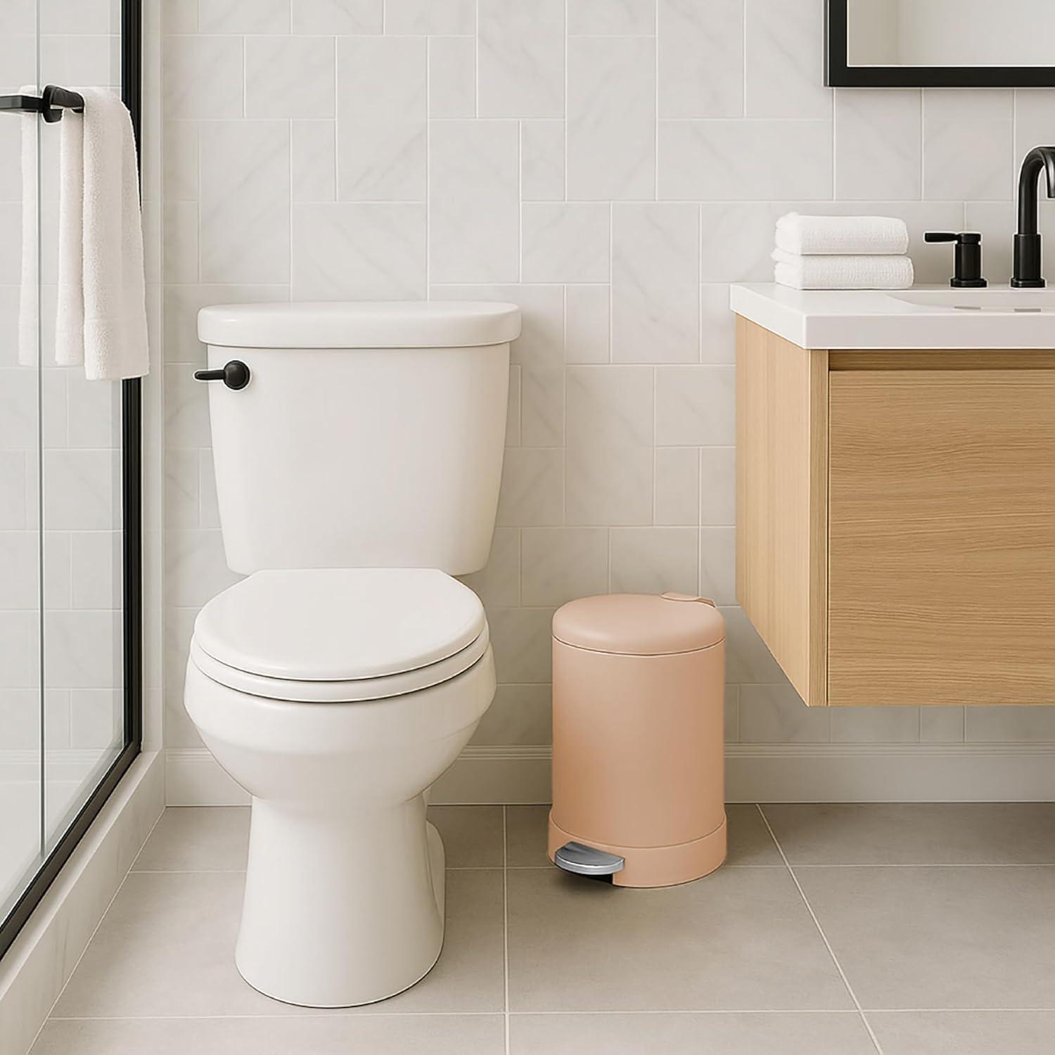 SMALL TRASH CAN WITH LID – The 1.2-gallon capacity makes this compact trash can the perfect size for rooms with limited space. Makes a great office trash can for near desk, lidded bathroom wastebasket, and tiny step can for apartment kitchens.