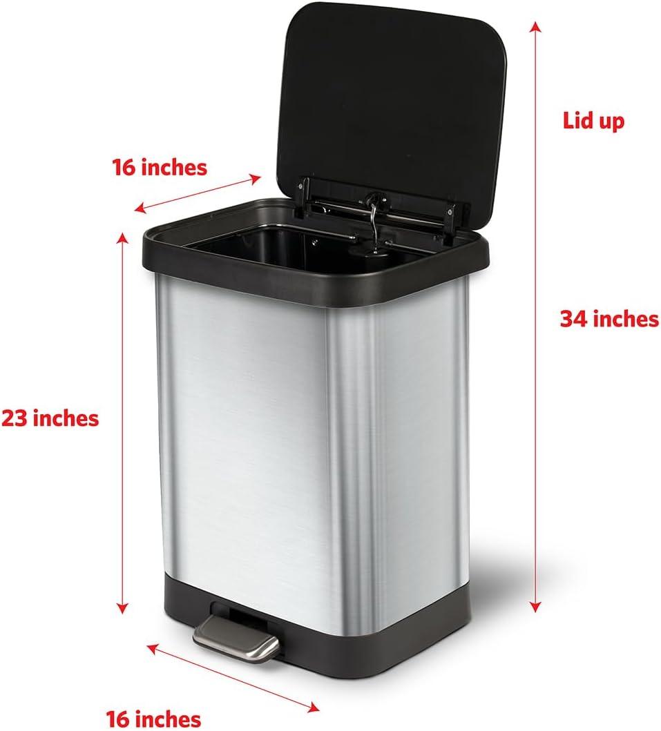 20 GALLON TRASH CAN – Fits 50% more trash compared to a standard 13 gallon/ 50 liter can. Take fewer trips taking out the trash! For use with any “black bag” with capacity of 20 gallons or larger – perfect for large families.