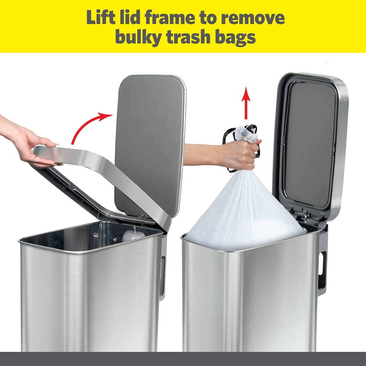 Glad Stainless Steel Step Trash Can with Clorox Odor Protection | Large Metal Kitchen Garbage Bin with Soft Close Lid, Foot Pedal and Waste Bag Roll Holder, 13 Gallon, All Stainless(White)