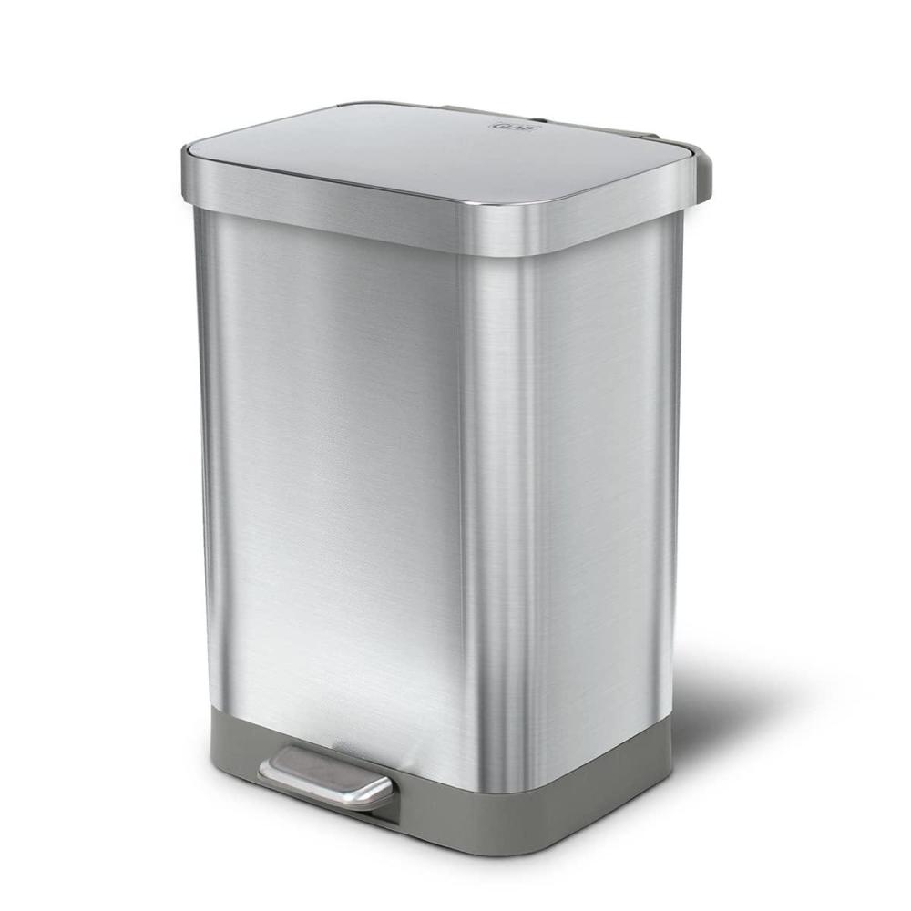 Glad 13 Gallon All Stainless Steel Step Trash Can with Clorox Odor Protection