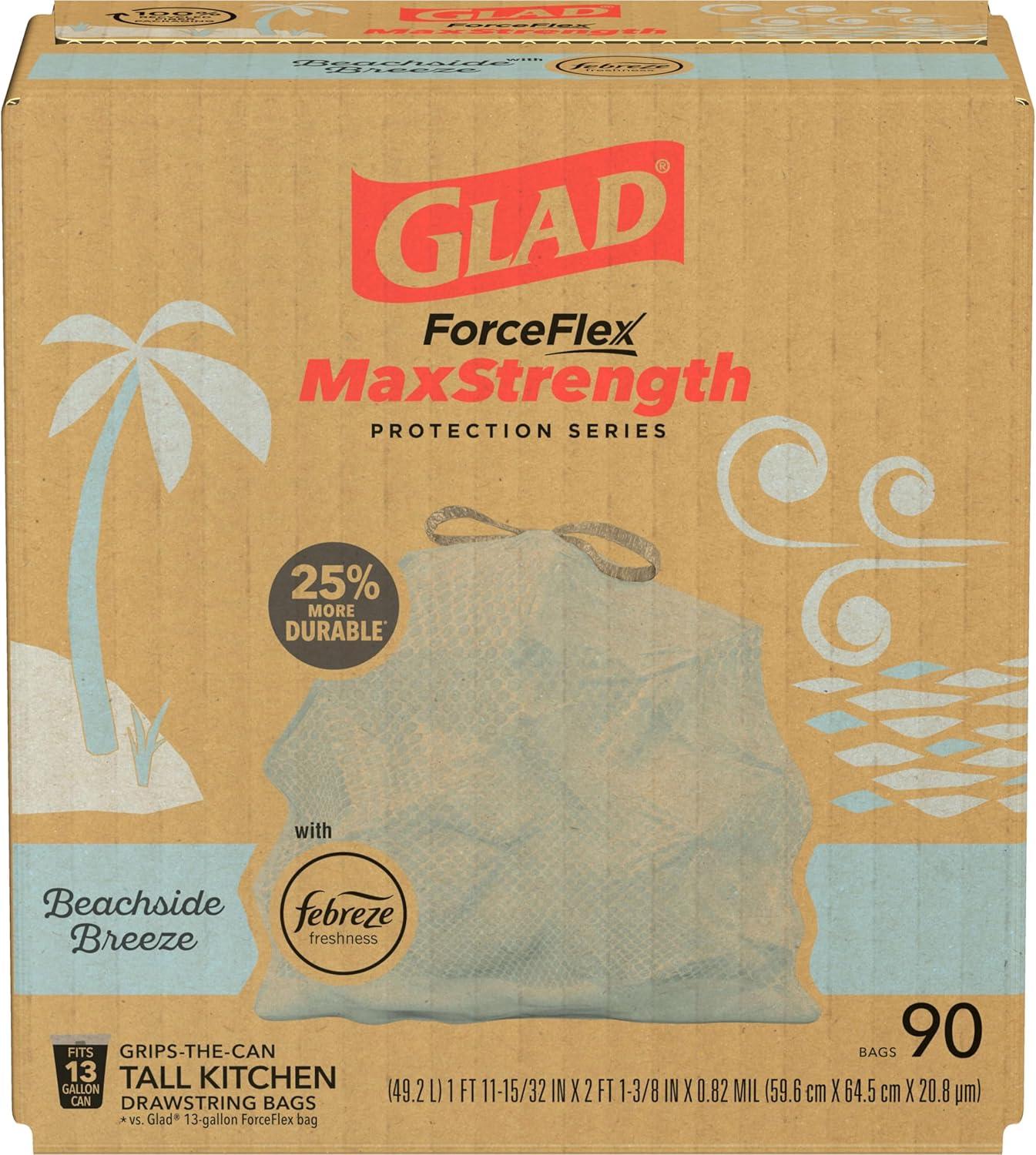 Glad Tall Kitchen Trash Bags 13 Gallon, MaxStrength Cherry Blossom Garbage Bags, Drawstring, 90 Count(Beachside Breeze)