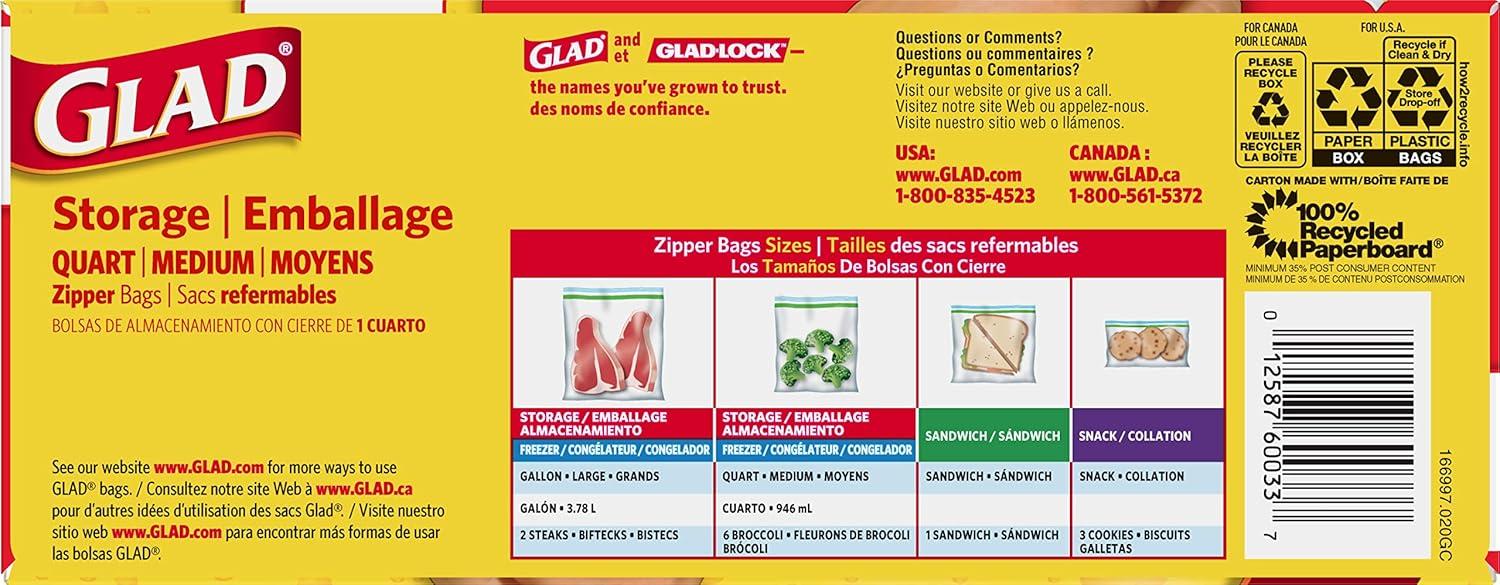 QUART PLASTIC STORAGE BAGS: Glad quart storage zipper bags are BPA free, have a zipper closure and provide solutions for a variety of different storage needs