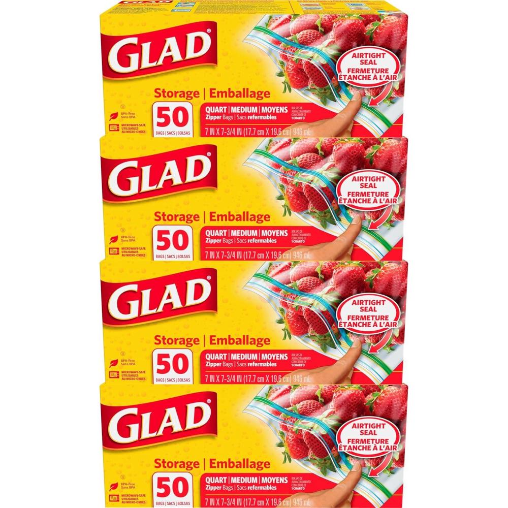 Glad Zipper Food Storage Plastic Bags - Quart - 50 Count, Pack of 4
