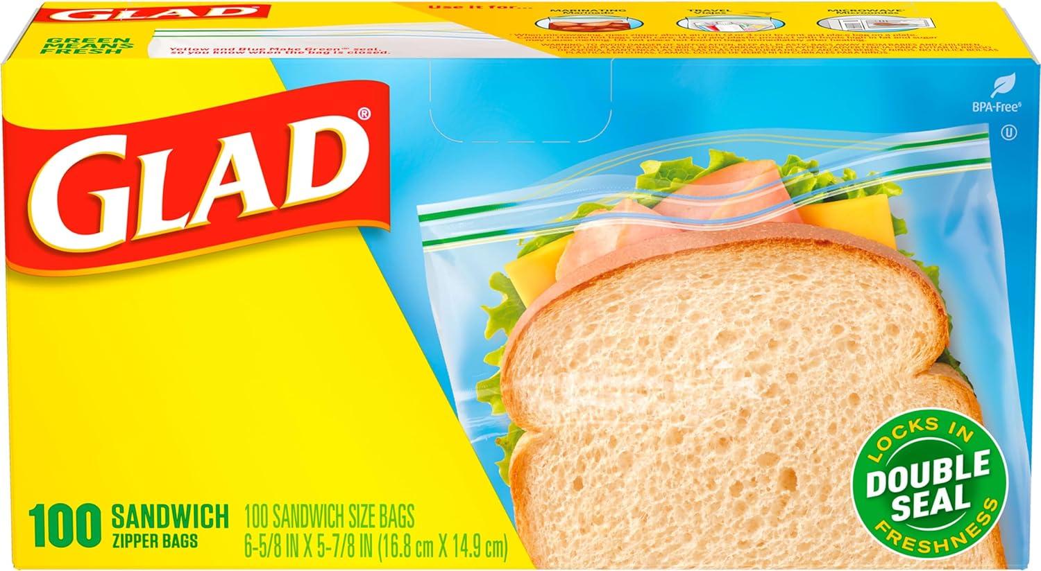 GLAD ZIPPER SANDWICH BAGS: Zipper the seal and lock in freshness for sandwiches, chips, vegetables and all food on the go