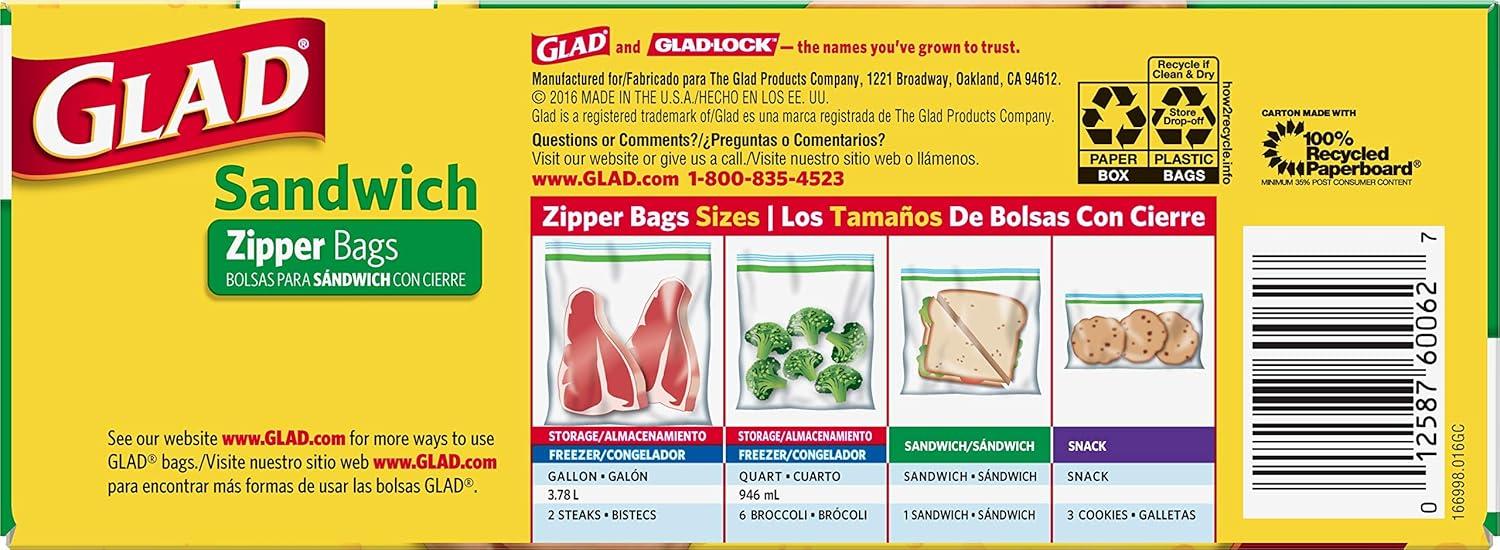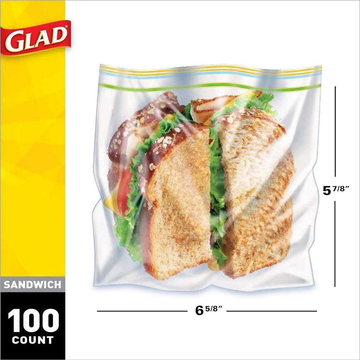 Glad Zipper Food Storage Plastic Bags – Sandwich – 100 Count, Pack of 6(100 Count (pack of 6))